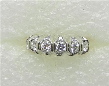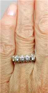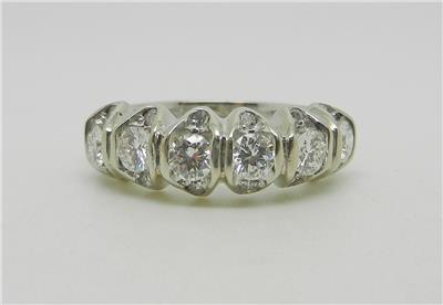 This beautiful ring is solid white gold stamped 14K and also has another stamped that has worn off a bit and it is not clearly readable. The ring is a 3-row band that has six channel set genuine natural diamonds that total approximately 0.80 ct., VS1-VS2 in clarity, G-H in color in the center row. There are also twelve genuine natural smaller diamonds that total approximately 0.20 ct., SI1-SI2 in clarity, H-I in color, for a total carat weight of 1.00 ct. The ring was appraised by a GIA Graduate Master Gemologist and the full detailed report will be included with the ring. The replacement value of this gorgeous band is $3,788.75 including Texas taxes. The ring can be resized by your local jeweler. The pictures don't do this ring justice, it has a lot of sparkle.