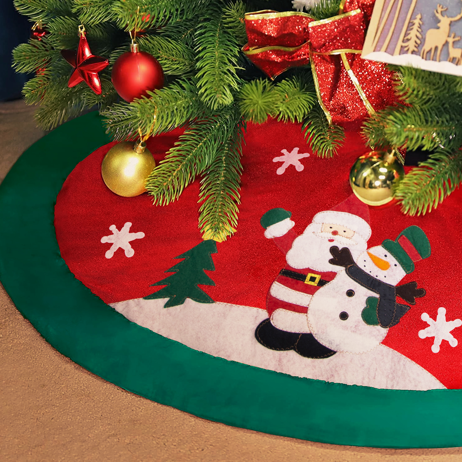 The Christmas tree mat has lovely Santa Claus, snowman and deer patterns to add a warm Christmas holiday atmosphere. ☞ Easy To Install
