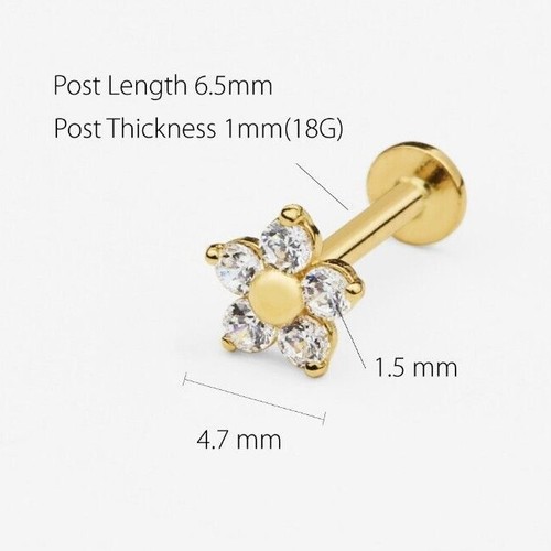 14k Solid Gold 5 CZ Flower Internally Threaded Labret Stud Earring, Minimalist Earring