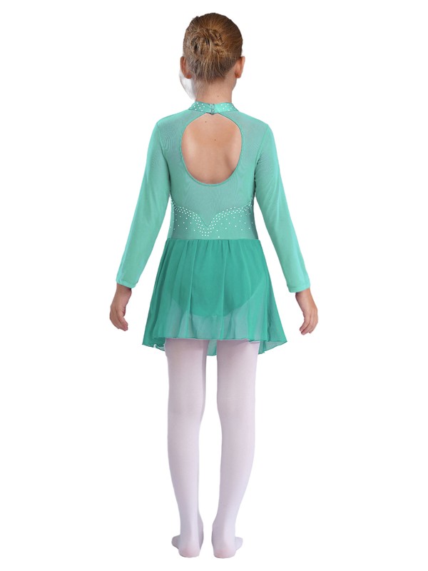 Kids girls figure ice skating roller skating ballet dance leotard dress, pull on closure.