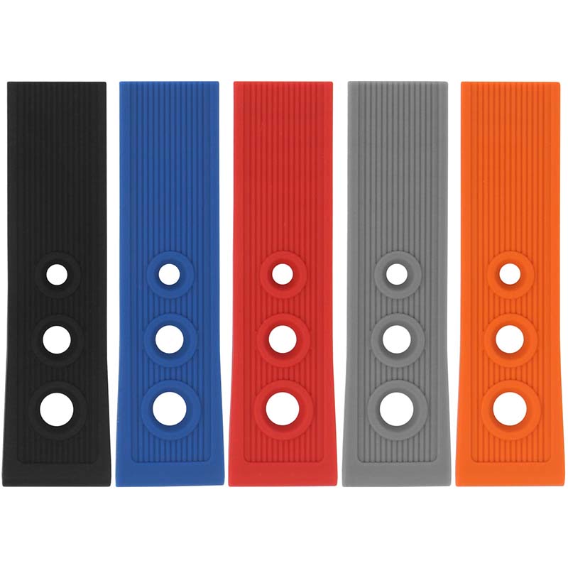 StrapsCo rubber strap will fit on any watch that uses straight spring bars. This strap combines elements of a rally strap and a classic strap, with a lined pattern surrounding the three hole design. Does not come with a clasp however the clasp end is 20mm wide and 4mm thick.