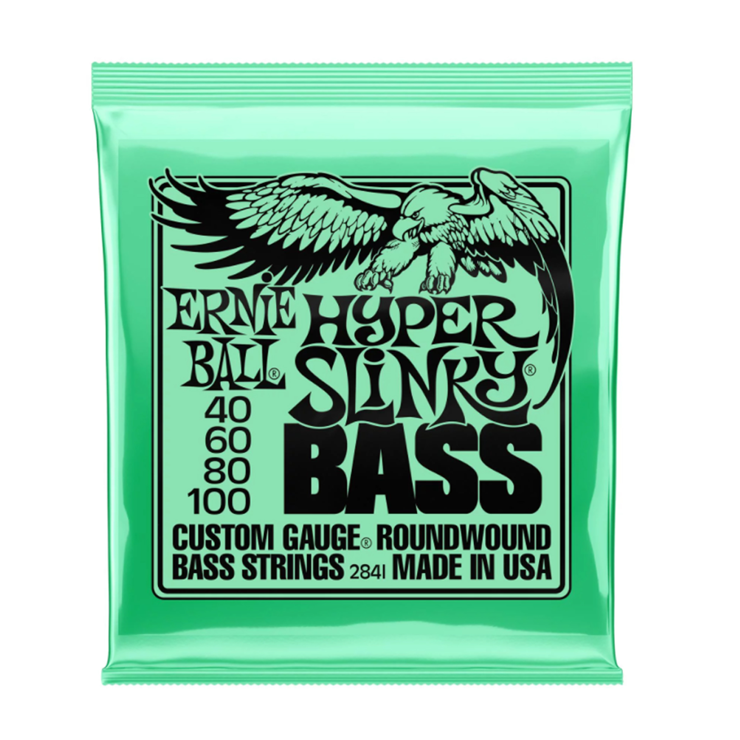 Ernie Ball nickel-plated steel strings are wrapped around a tin-plated, hex-shaped steel core wire for a silky, balanced tone. Like all Ernie Ball strings, the Hyper Slinky Bass strings are made to last night after night last gig after gig. Ernie Ball 2841 .040-.100 Hyper Slinky Nickel Wound Electric Bass