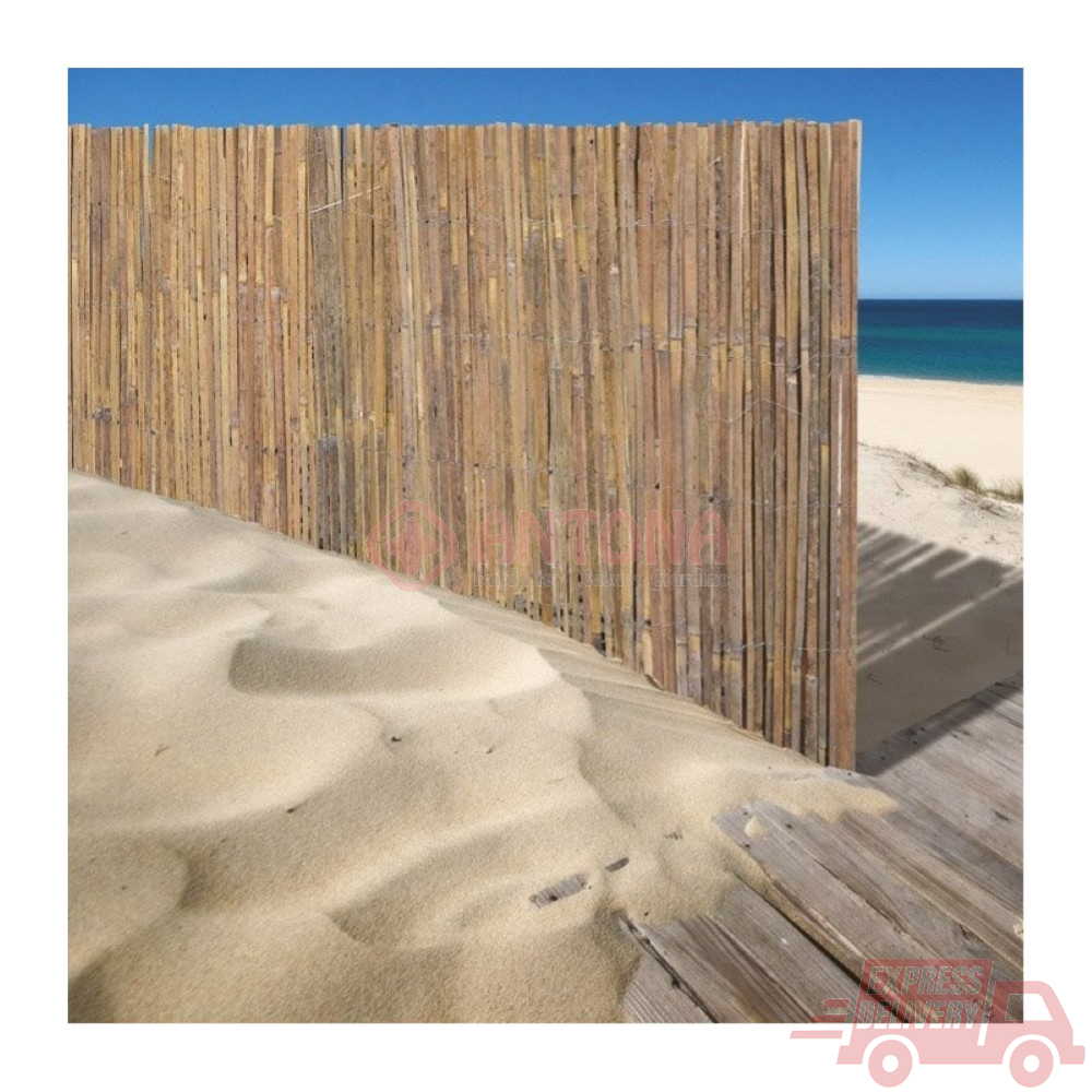 Arella Mezza Canna Beach 1X3 in cannette di bamboo spaccato da circa 15 mm, legate con filo metallico. Pratica e leggera, è perfetta per recinzioni.