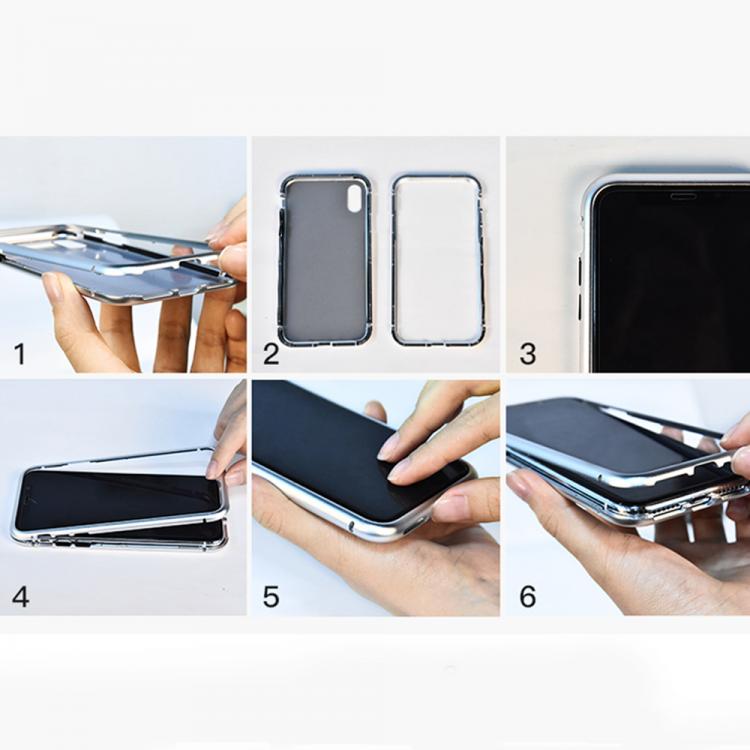- Die Hülle besteht aus zwei Teilen - Metallrahmen mit Magnet und Backcover aus 9H gehärtetes Glas mit Rahmen aus Metall.
