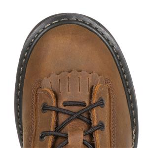 Adding more comfort to this tough work boot is an extra-durable ribbed tempered steel shank to support your arch and an outstanding, Air-Port™ cushion footbed. The strategic design of this hardy leather boot accommodates air flow, allowing your feet to breathe and your boot to last longer. There's also a kiltie for traditionally professional appearance and to keep debris out of your boot.