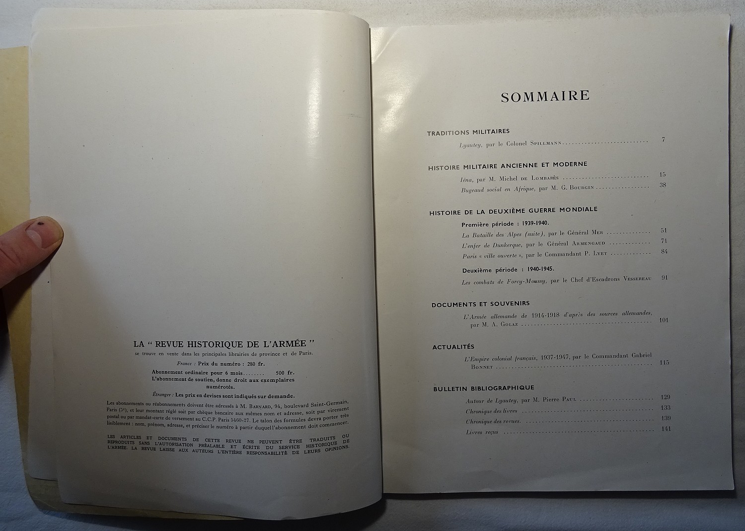 Pour ce numéro : Lyautey - Iéna - Bugeaud social en Afrique - La bataille des Alpes / 1940 (suite) - L'enfer de Dunkerque (1940) - Paris ville ouverte (1940)