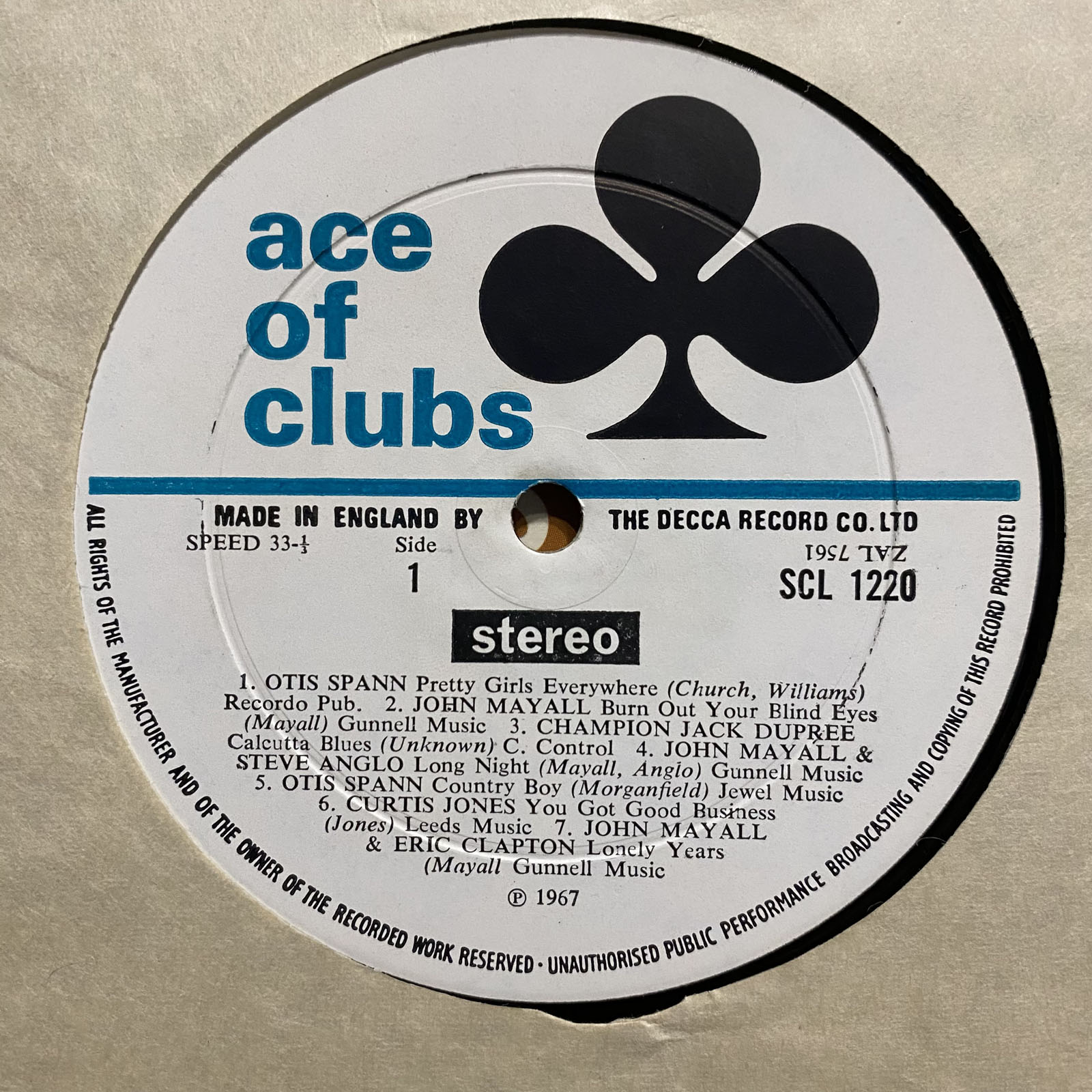 | LABEL | Ace Of Clubs Records / Decca Record Company Limited | |||||||||||||||||||||||||||||||||||||||||||||