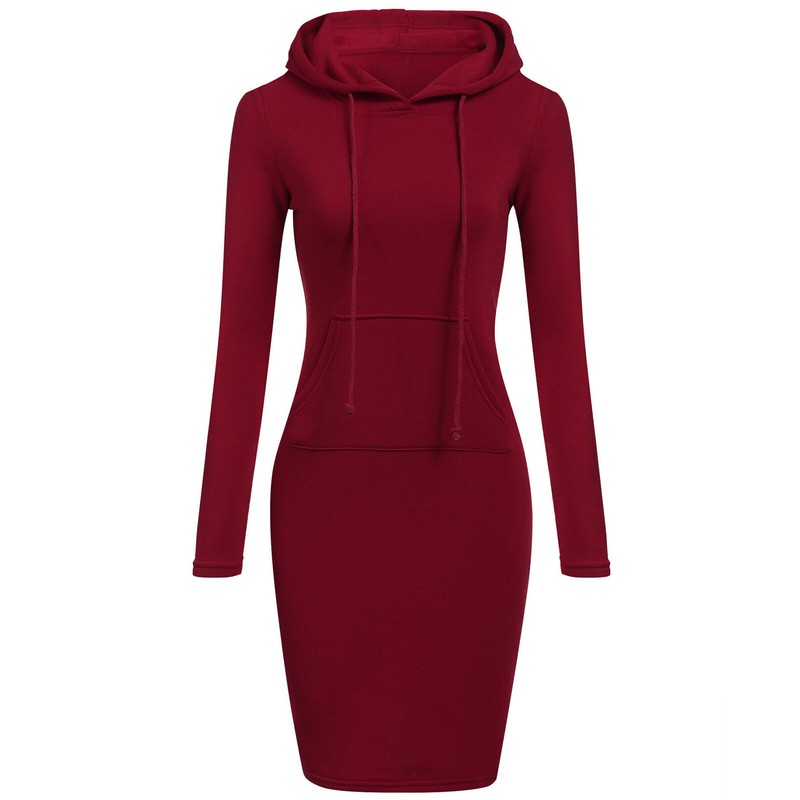 Long sleeve dress for women, solid color, with adjustable drawstring hood.