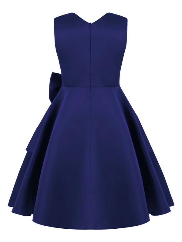 Kids girls big bowknot decor satin party dress round neck sleeveless A-line solid dress for birthday evening.