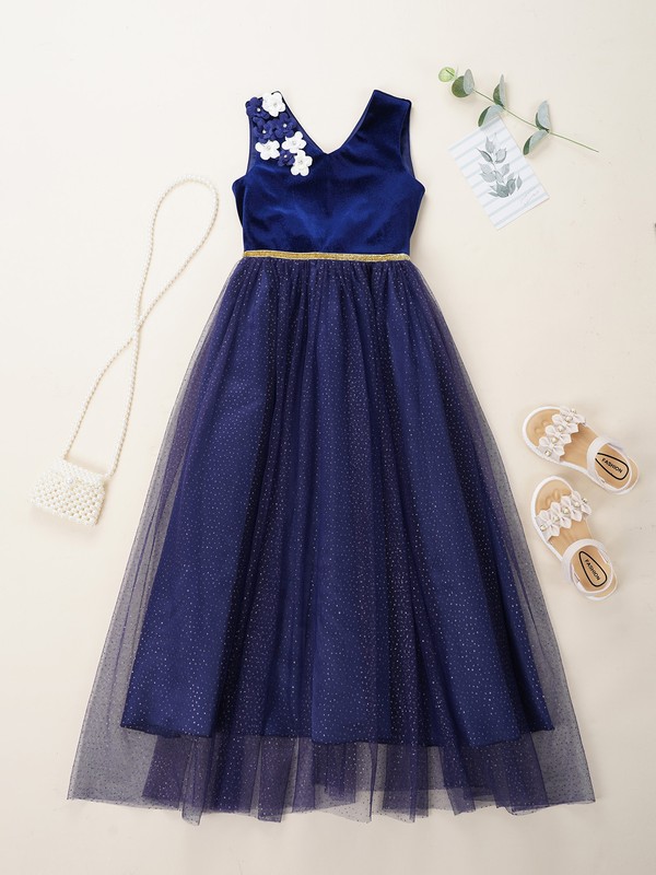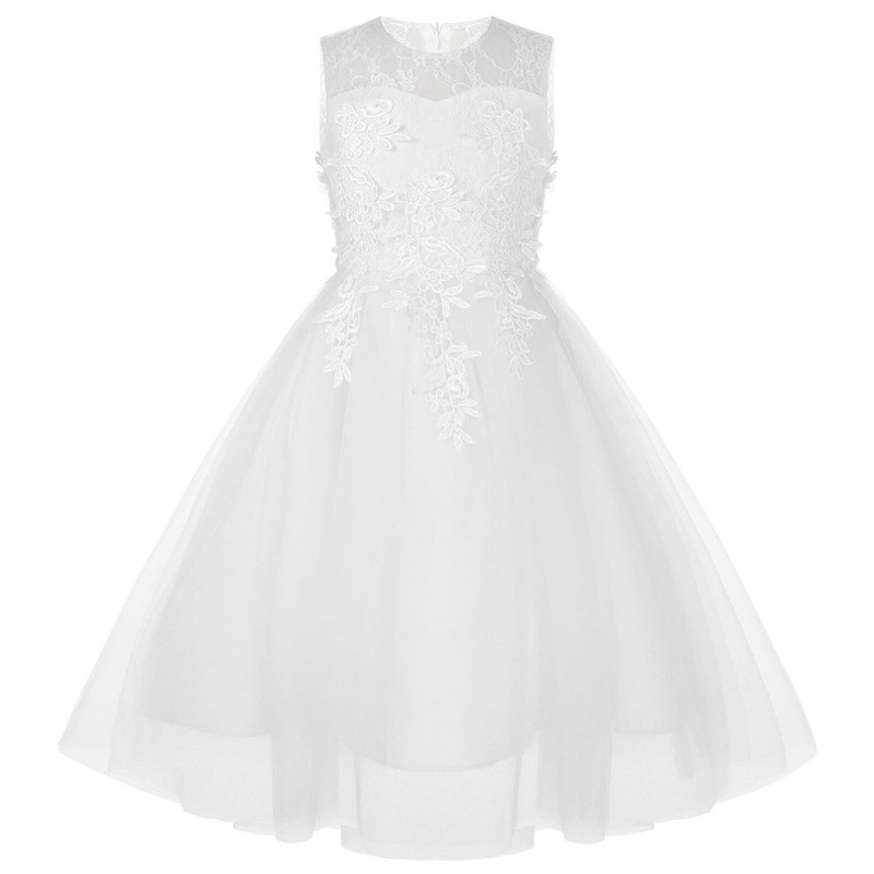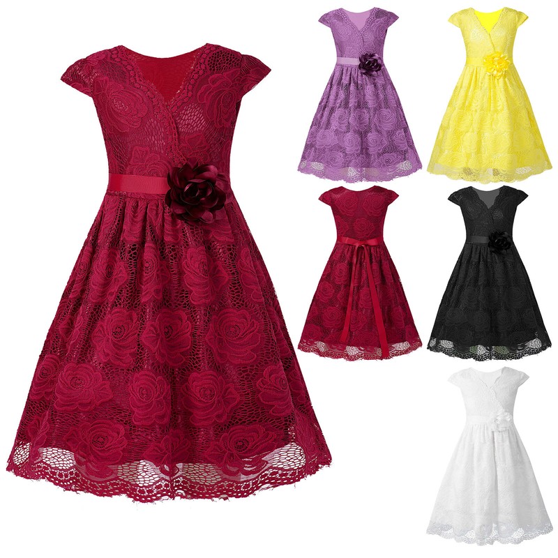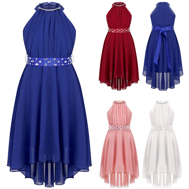 Round neck, sleeveless, a big bowknot at front waist, A-line design, knee length and pure color, making girl elegant and eye-catching.