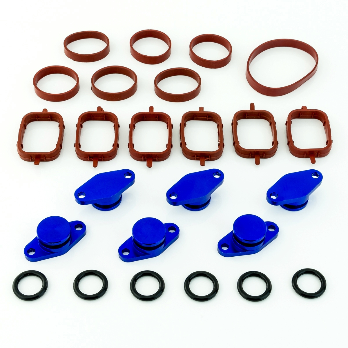 • Dieses Set besteht aus 6 Drallklappenabdeckungen (22mm) mit O-Ring inklusive der benötigten Krümmerdichtungen und dient zum Austausch der originalen Drallklappen.