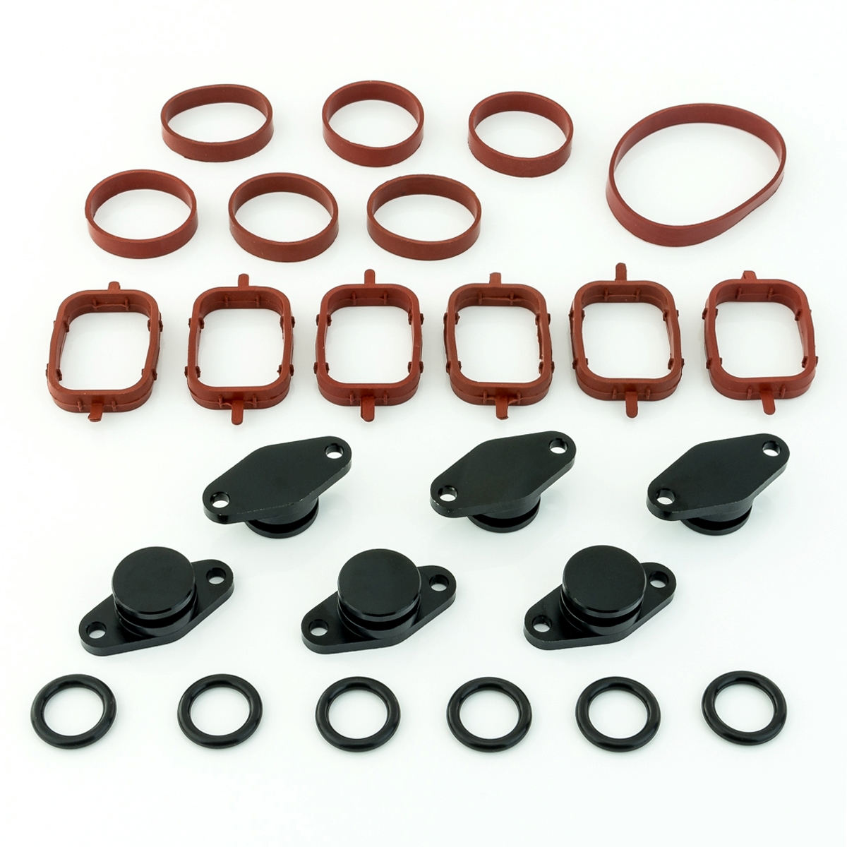 • Dieses Set besteht aus 6 Drallklappenabdeckungen (22mm) mit O-Ring inklusive der benötigten Krümmerdichtungen und dient zum Austausch der originalen Drallklappen.