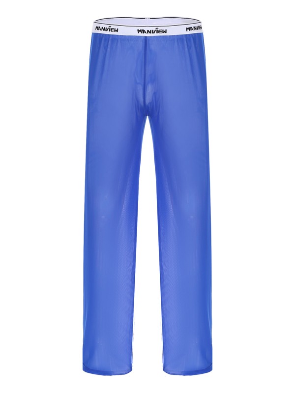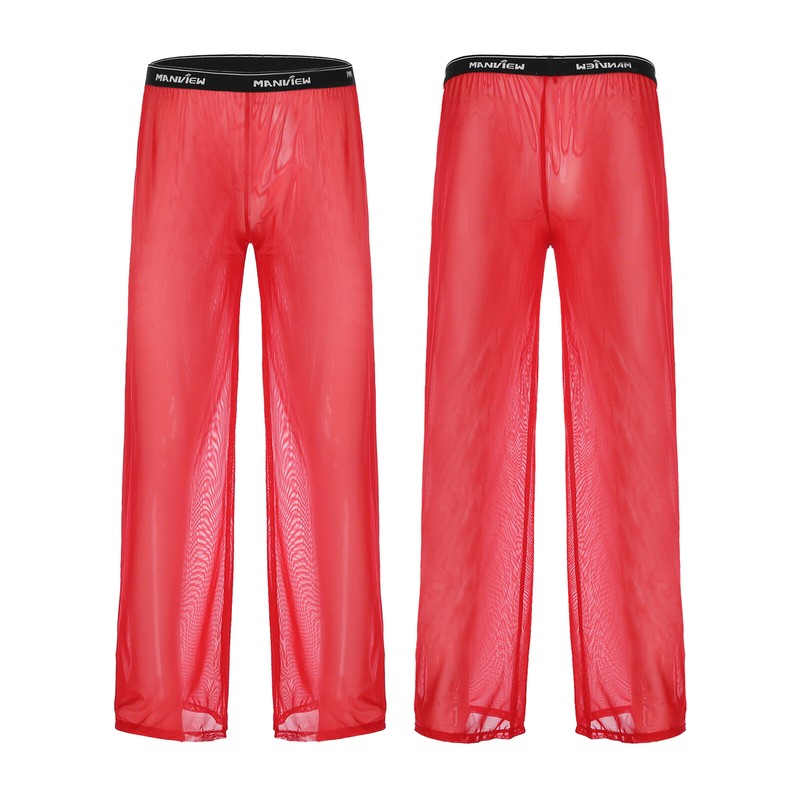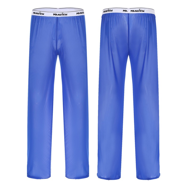 Men Casual See-though Mesh Pajama Bottoms Ultra-thin Pants Low Waist Elastic Waistband Trousers Nightwear.
