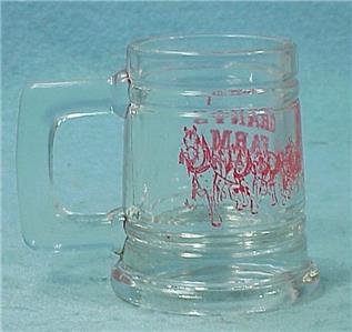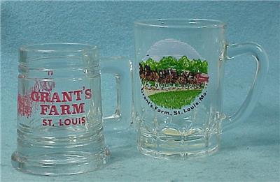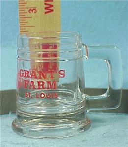 - Specifics about this item Advertising beer mini mug in a smaller size for Budweiser Beer and says GRANTS FARM - ST LOUIS, MO in a medium red color.