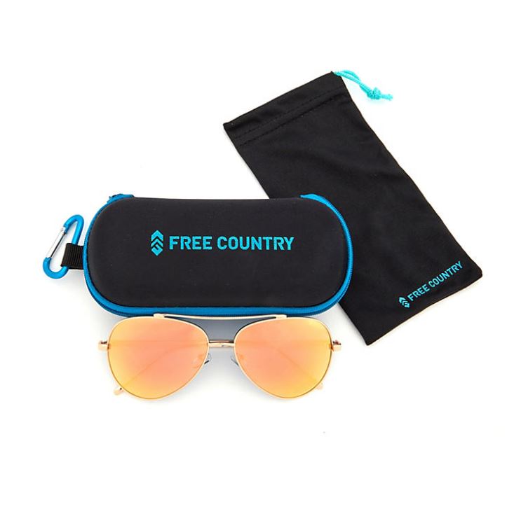 These classic sunglasses are so versatile! The modern aviator shape will flatter all face shapes and fashion styles. The Free Country women's frame features rose gold mirrored lenses, adjustable nose pads and lightweight temples for the ultimate function and style.