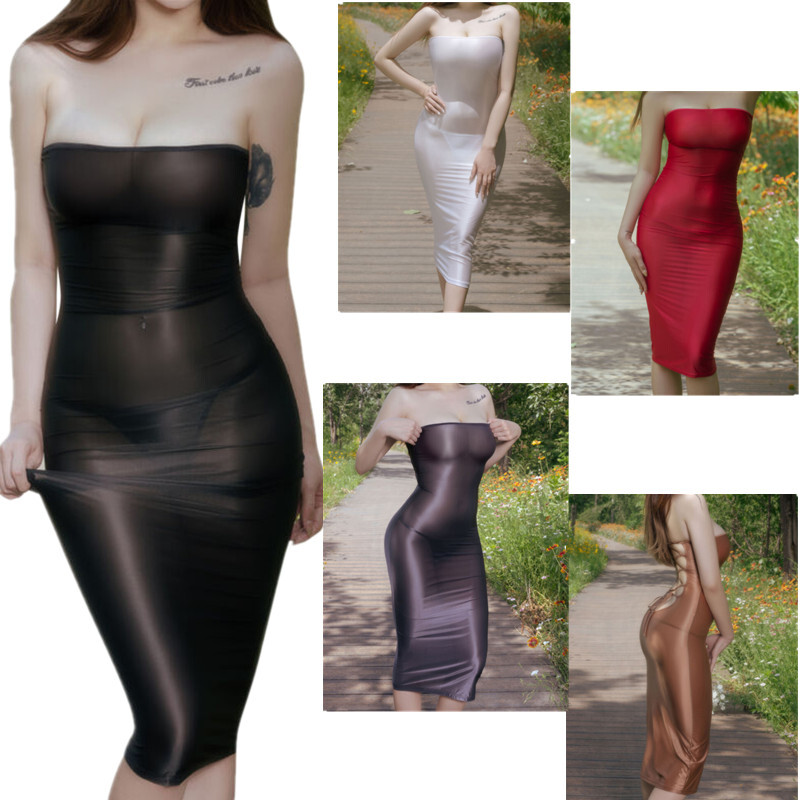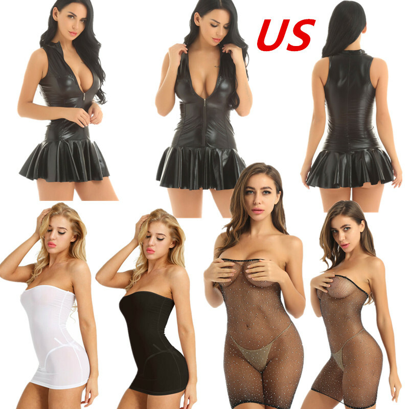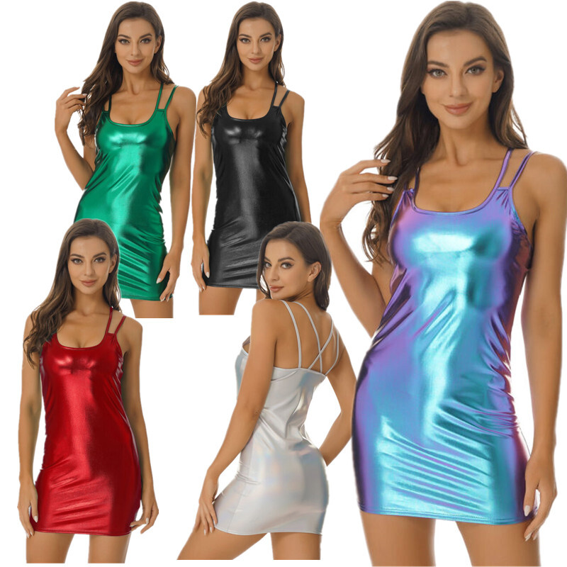 This glossy patent leather ruffle dress highlights your charming curve and makes you attractive.