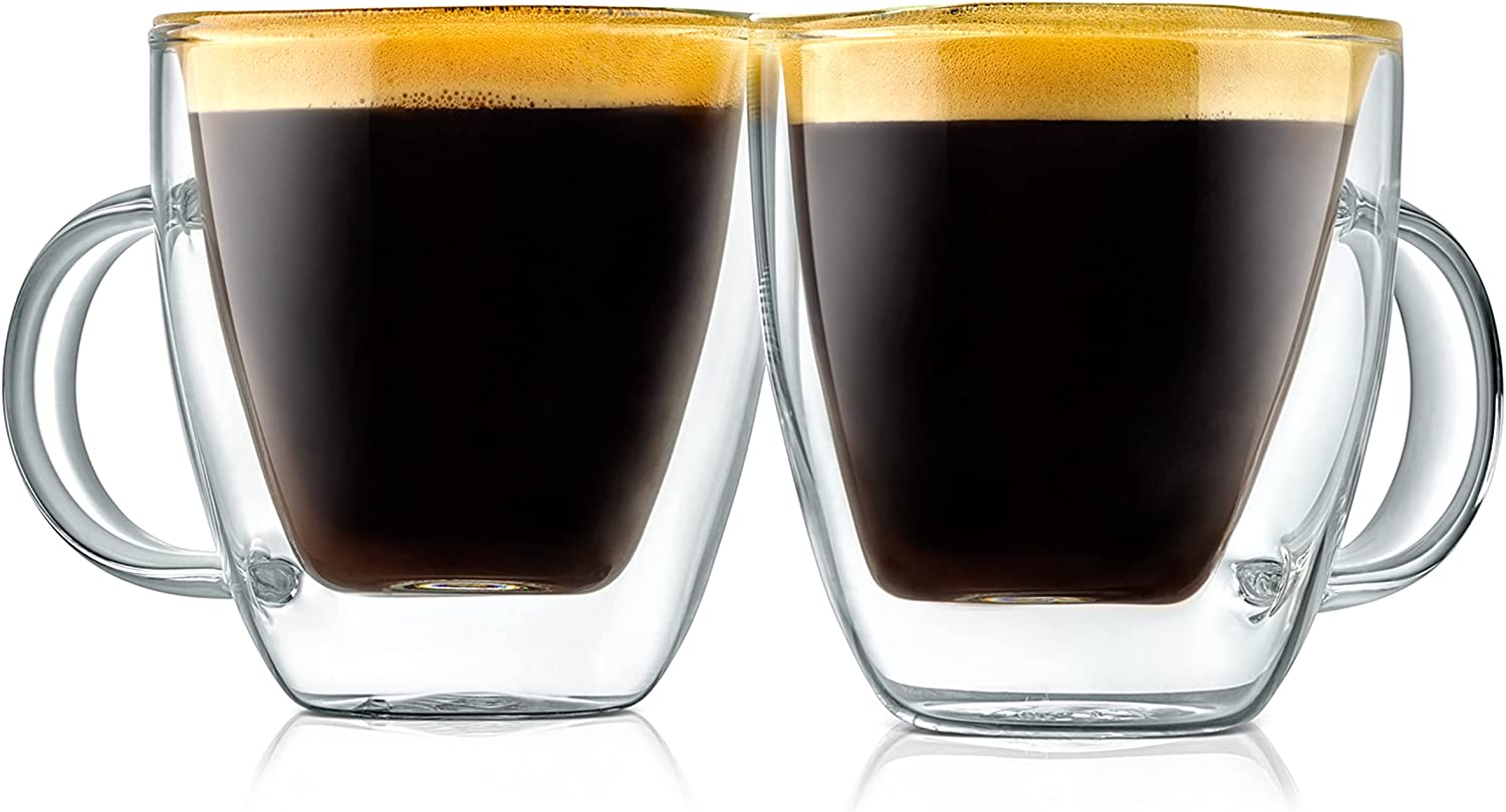 • PERFECT FOR HOT & COLD DRINKS: The double-walled glass easily keeps cold beverages cooler & hot drinks warmer for longer periods. As a result, you never have to worry about your drink getting too cold or too warm before you’ve had time to finish it