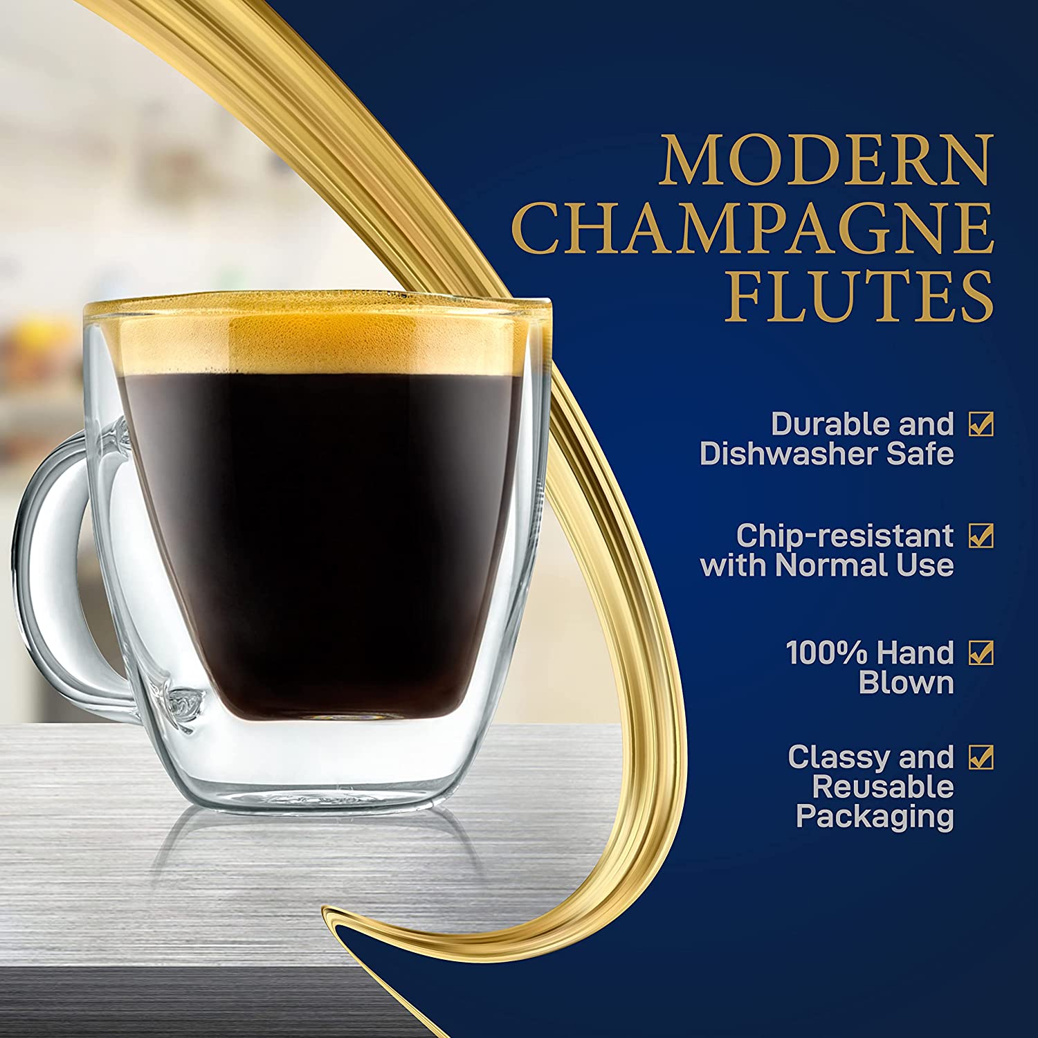 • HIGH BOROSILICATE GLASS: These glasses are made of mouth-blown, lab-quality borosilicate-glass construction for a durable and heat resistant glass. It has a sleek 2-layer design that creates a dramatic optical illusion and prevents condensation