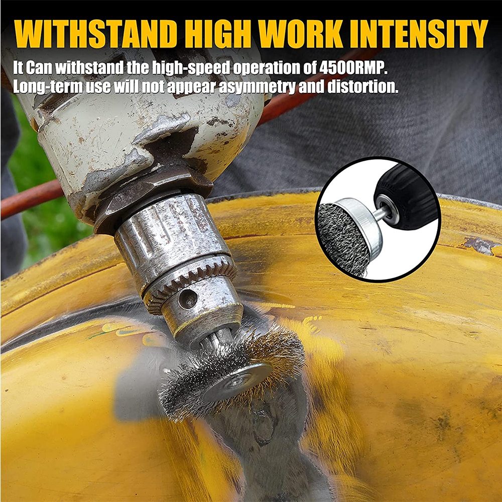 Wire Cup Brush, hardened steel wire long maximum 4500 RPM to get tough jobs completed quickly.
