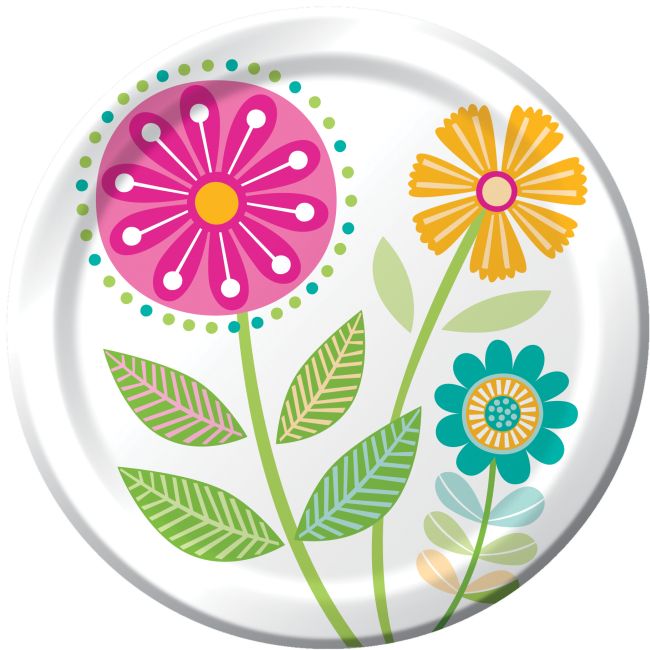 Whimsy 9-inch Plates Paper 8 Per Pack Floral Party Tableware Supplies