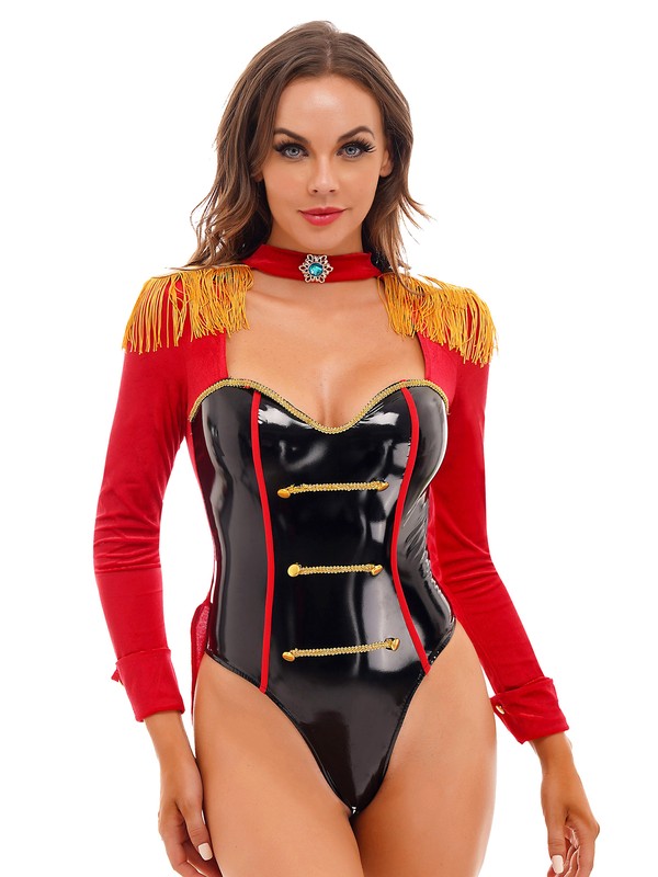 Glossy patent leather bodysuit, perfect show your charming curve and makes you hot and attractive.