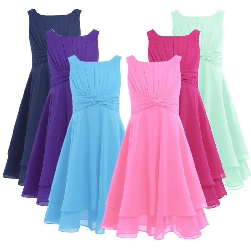 Shiny beaded adorns on shoulder, high-low chiffon skirt, ruched bodice and twisted knot, making your girl look elegant and charming.