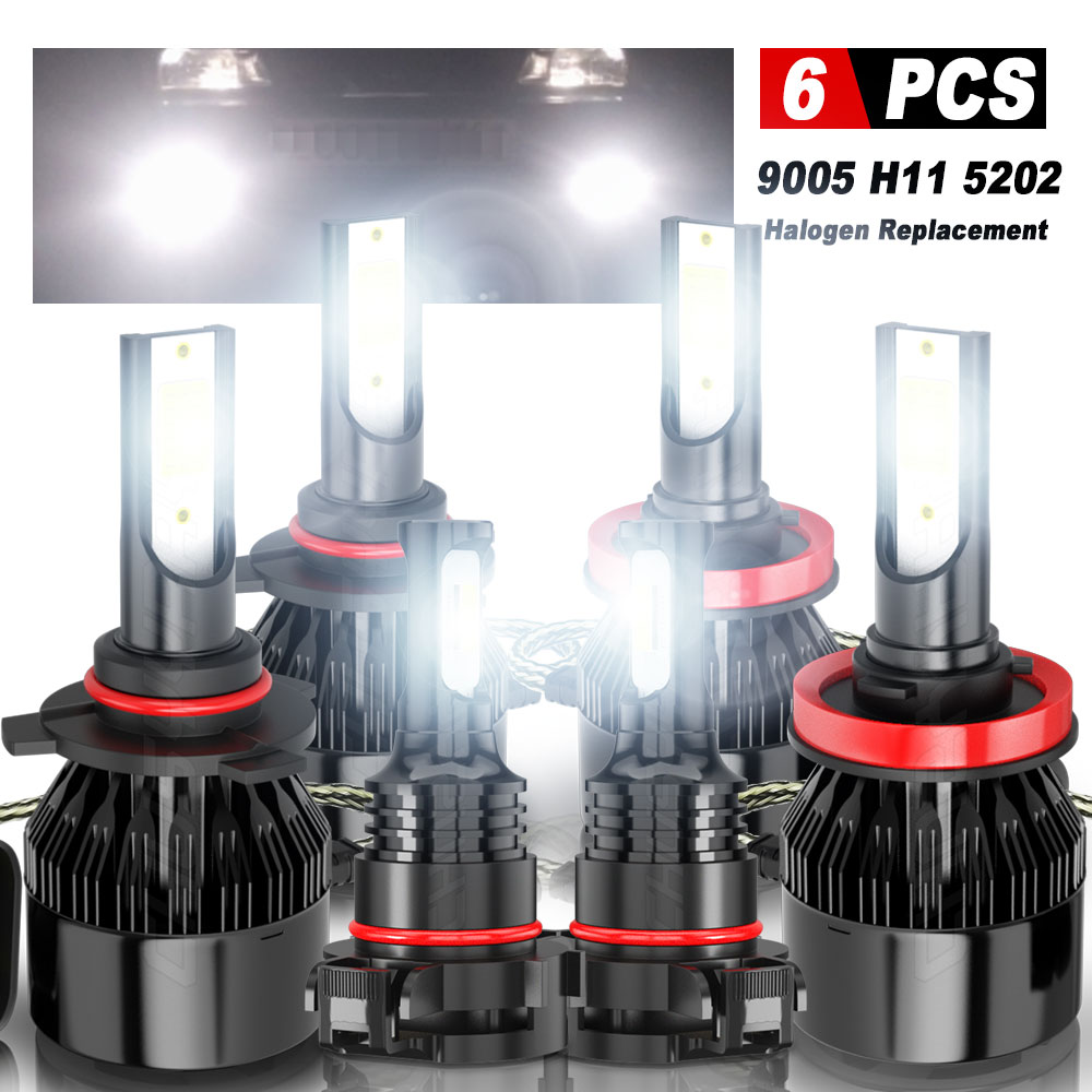 4x 9005+H11 High Power LED Headlight Bulbs