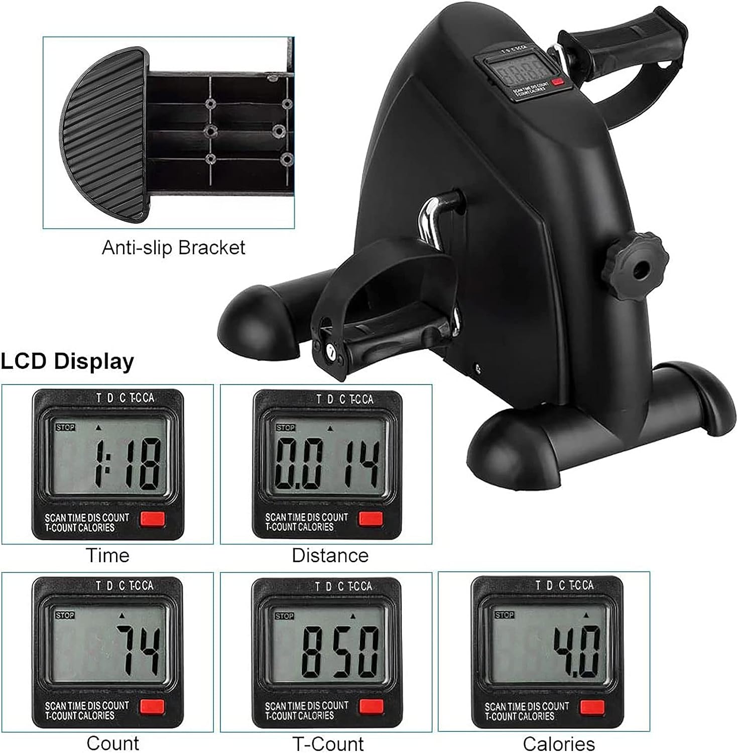 【Adjustable Pedal Resistance】: The pedal exerciser with adjustable resistance whirling, you can set different level resistance according to different groups, different exercising degree of difficulty for different exercising period.
