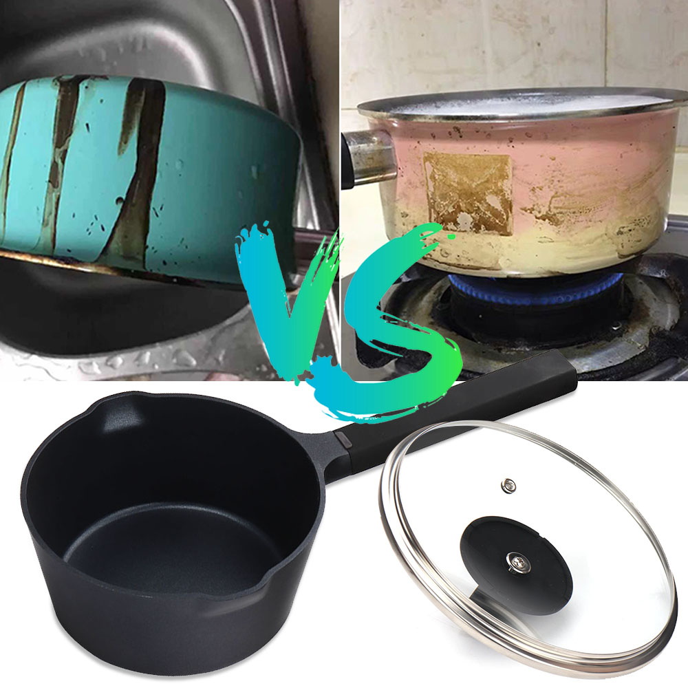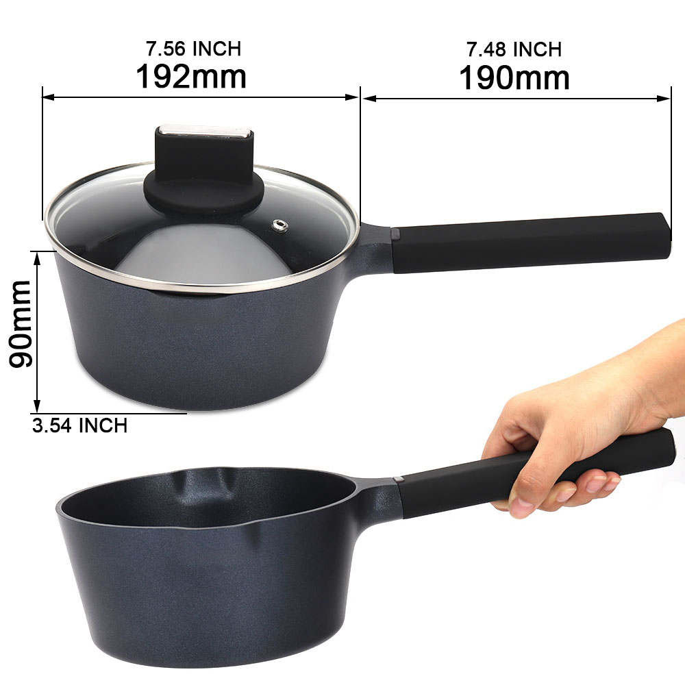 【Sturdy and Durable & Heat up Quickly】The milk pan is made of cast aluminum body, which makes the pot more sturdy and durable and Anti-warping.The wide and thick sauce pan bottom with a stainless steel base has high magnetic permeability,makes the pot heat up quickly and evenly.