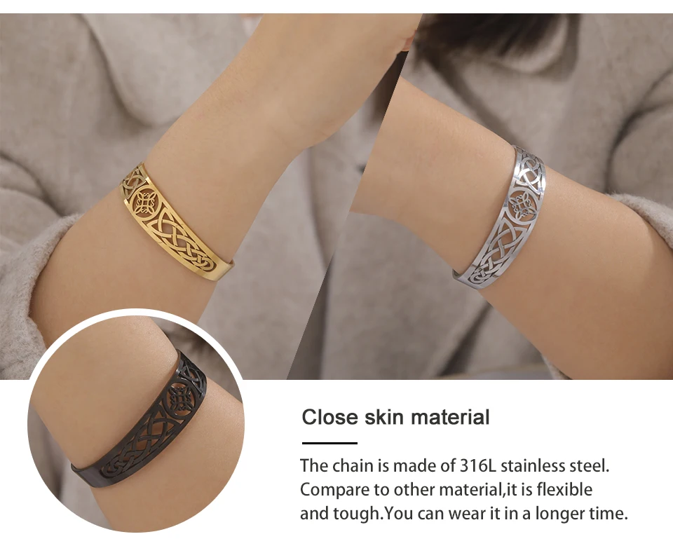 Product Name: TEAMER Witches Knot Bracelet Stainless Steel Pagan Wiccan Symbol Magic Knot 4-Pointed Celtic Knot Witchcraft Bangles Jewelry Women Girls