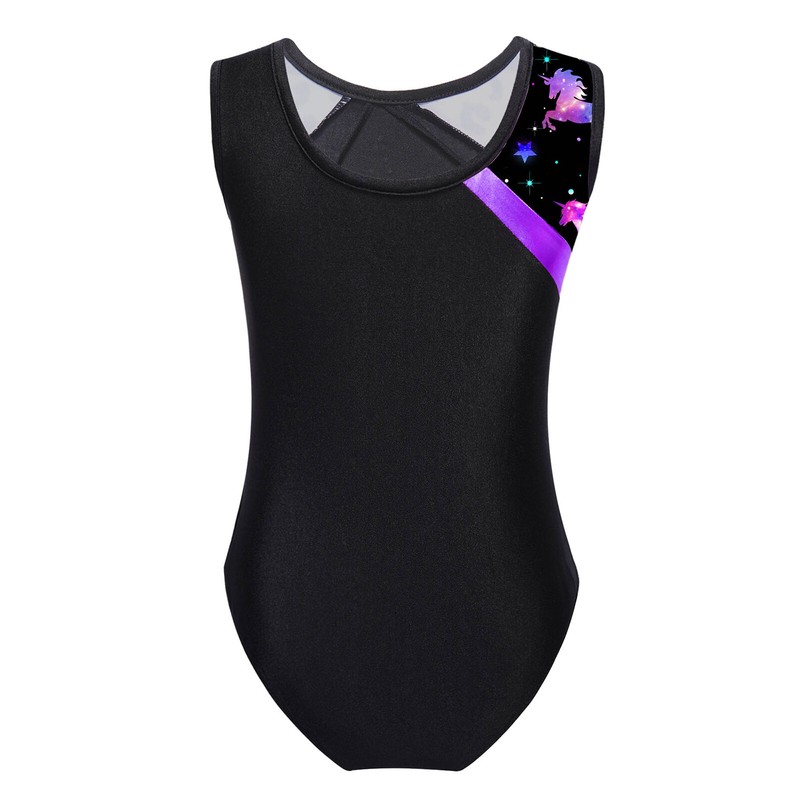 Sleeveless leotard for kids girls, patchwork design, various patterns are available.