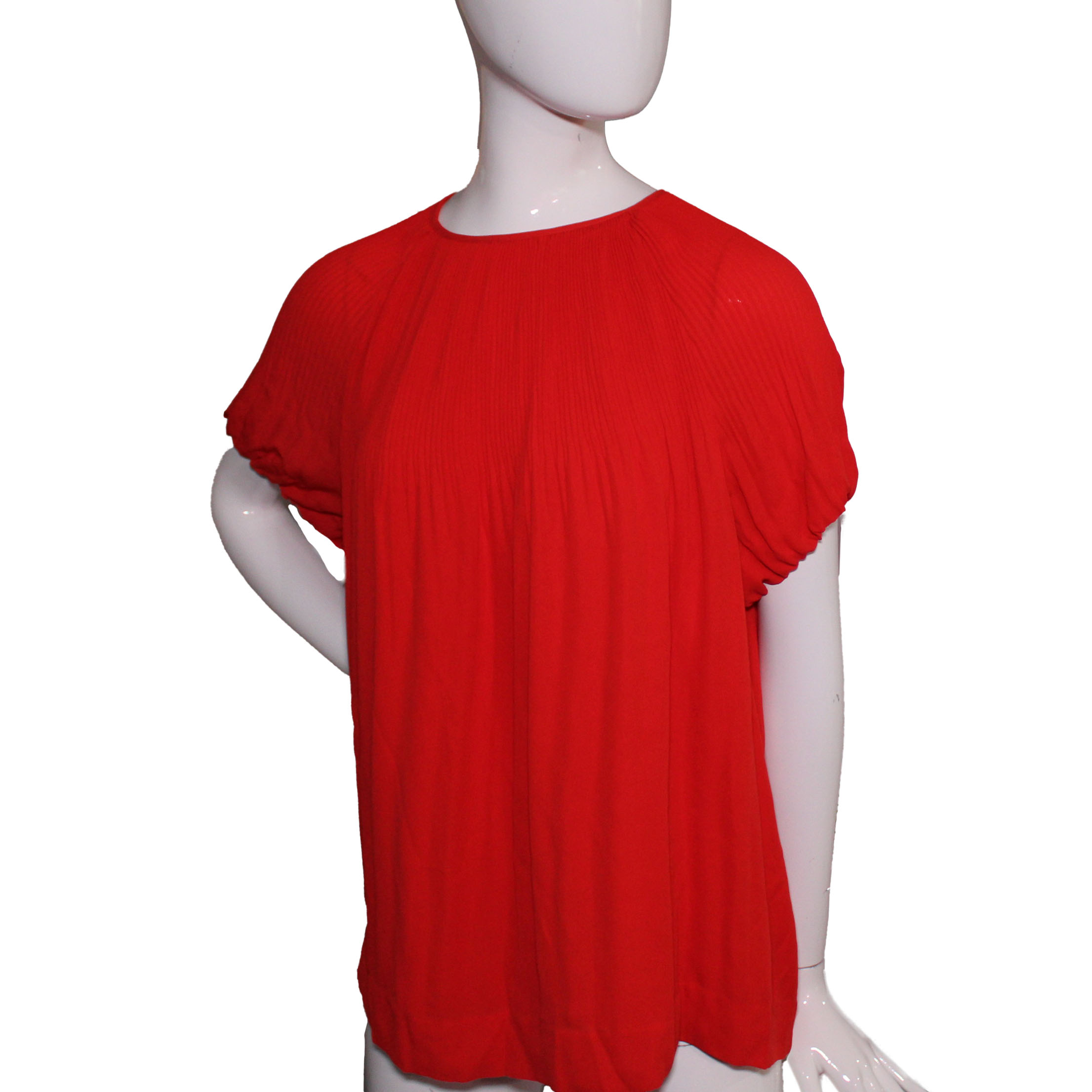 Lands' End Women Size 18 Petite, Short Sleeve Accordion Pleated Blouse, Red
