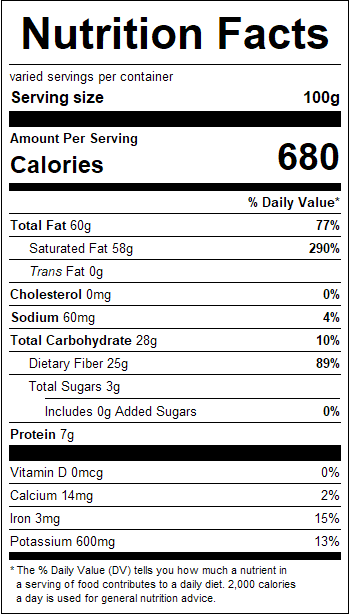 Ingredients: Coconut (contains sodium metabisulfite, retains coconut whiteness).