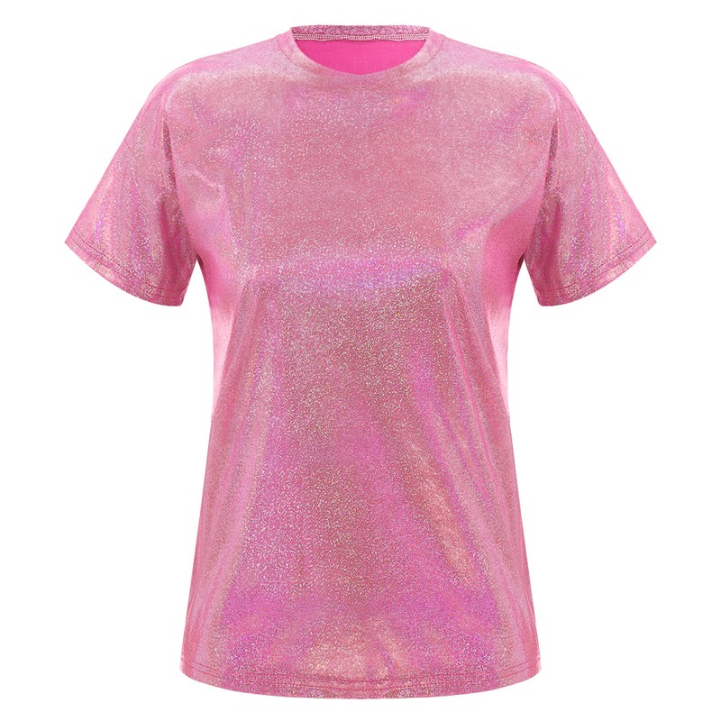 Short sleeve t-shirt for women, metallic shiny surface, makes you fashion and eye-catching in the crowd.