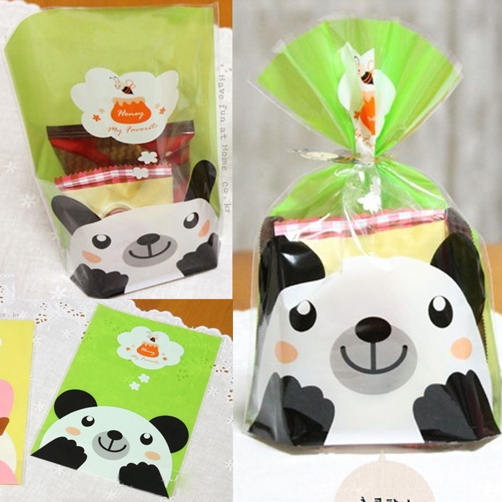 Beautiful cookie bags featuing a cute panda print.. Ideal for packing any type of treats.. Be it cookies, chocolates, a cupcake etc.. Please note: Twist ties are not included and can be purchased separately.. Dimensions: 14 x 20cm