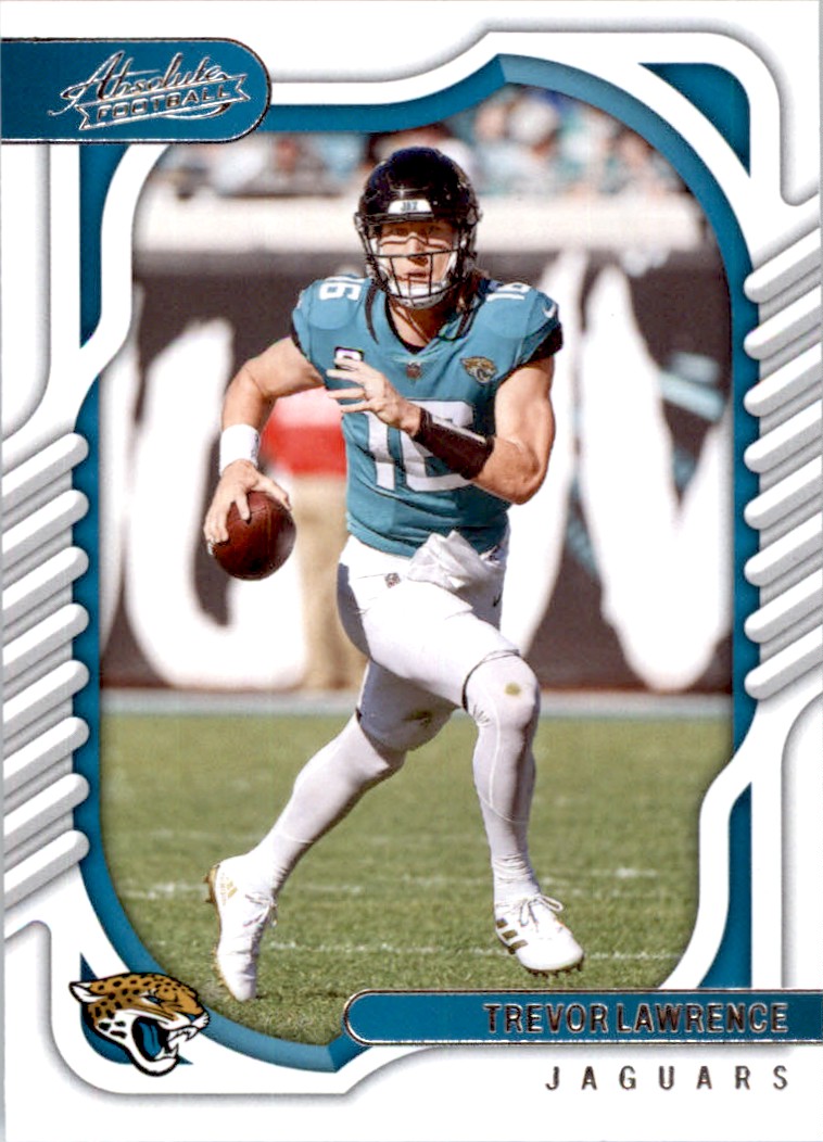 | Description: | Trevor Lawrence | | Category: | Football | | Year: | 2022 | | Product: | Panini Absolute | | Team: | Jacksonville Jaguars | | Card Number: | 56 | | Dimensions: | 3½" x 2½" |