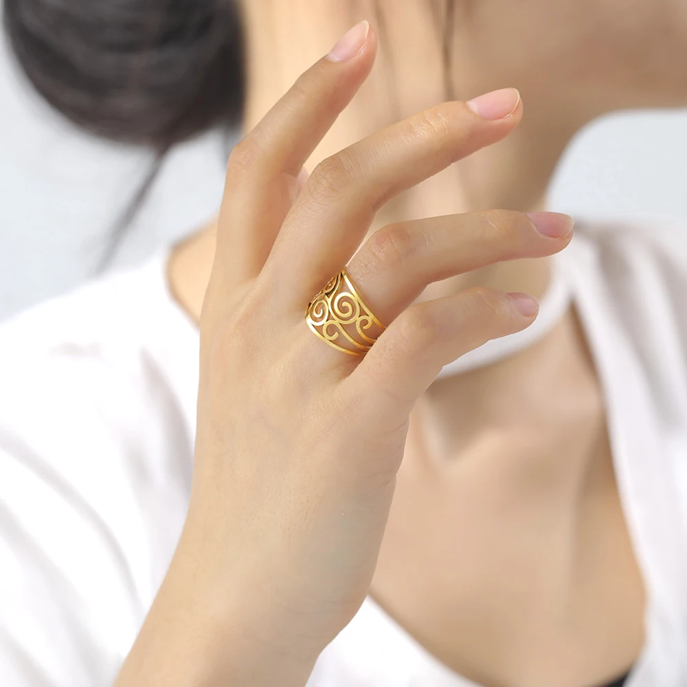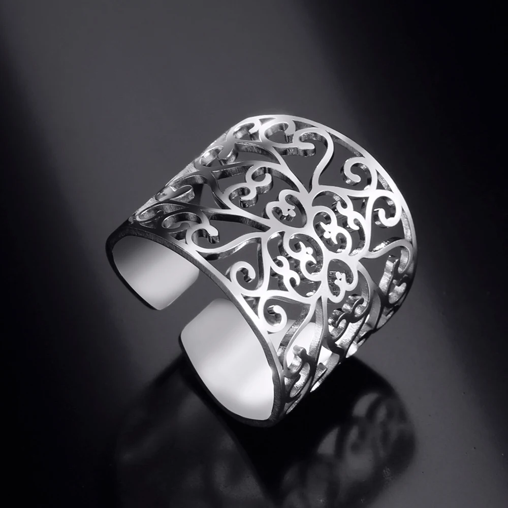 MATERIAL- The Filigree Cutout Floral Ring is made of Stainless steel which has the advantages of not fading, not easy to scratch and leaving marks, and never deformed.