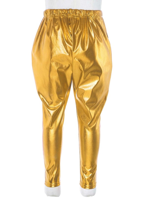 The harem pants with good elastic waistband, solid color bronzing cloth style, casual loose enough.