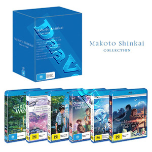 |  | |  | | *** The Makoto Shinkai Collection NEW Blu-Ray 6-Disc Box Set Makoto Shinkai *** | |  |  |  |  | | | Brand new, official studio-released Blu-Ray of this great film, imported from Australia ( Hoshi no koe / By�soku 5 senchim�toru / Kumo no muk�, yakusoku no basho / Koto no ha no niwa / Hoshi o ou kodomo / Kimi no na wa. / Tenki no ko ) ( Voices of a Distant Star / 5 Centimeters per Second / The Place Promised in Our Early Days / The Garden of Words / Children Who Chase Lost Voices / Your Name. / Weathering with You ) This is a Blu-Ray Disc, Region B. This Blu-Ray Disc will play on standard Blu-Ray players in Europe (other than Russia, Ukraine and Belarus), Australia, New Zealand, Africa and Middle East (including Iran).