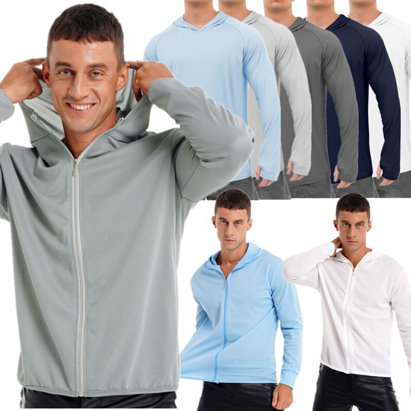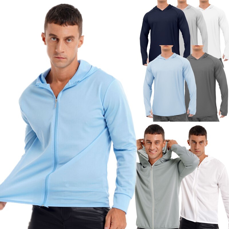 Mens Sun Protection Hooded Jacket Outdoor Travel Hiking Fishing Climbing Long Sleeve Shirt Zipper Hoodie.
