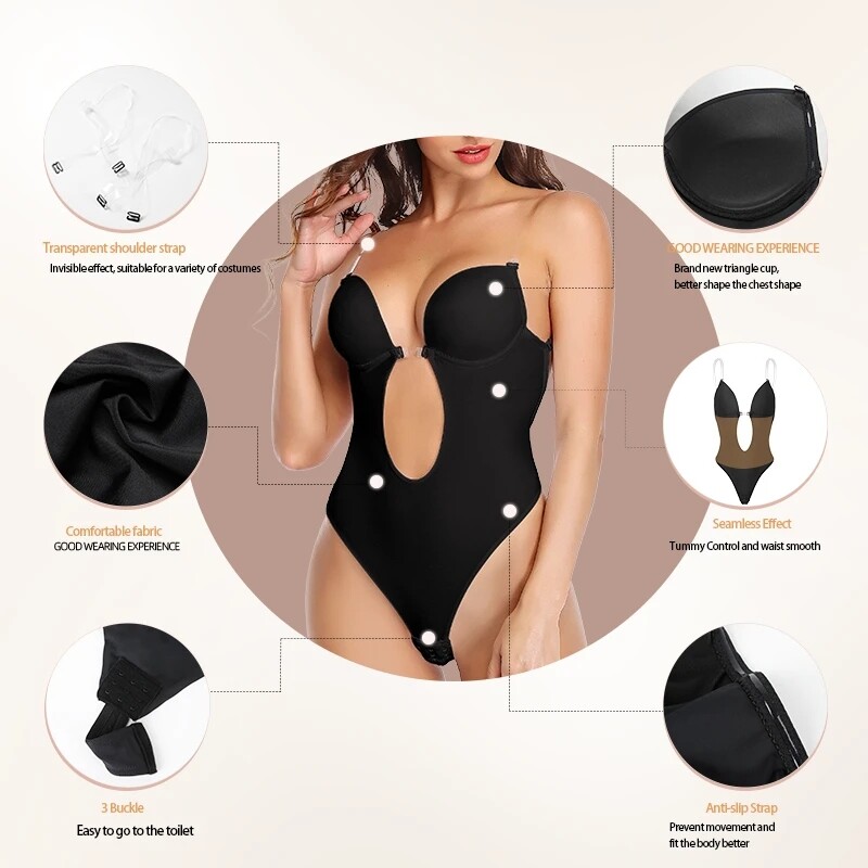 DEEP V & BACKLESS DESIGN:Low plunging shapewear build a sexiest look under clothes, Clear strips express your perfect shoulder and perfect back.Bra Pad are well supported, provide a lift for your breast