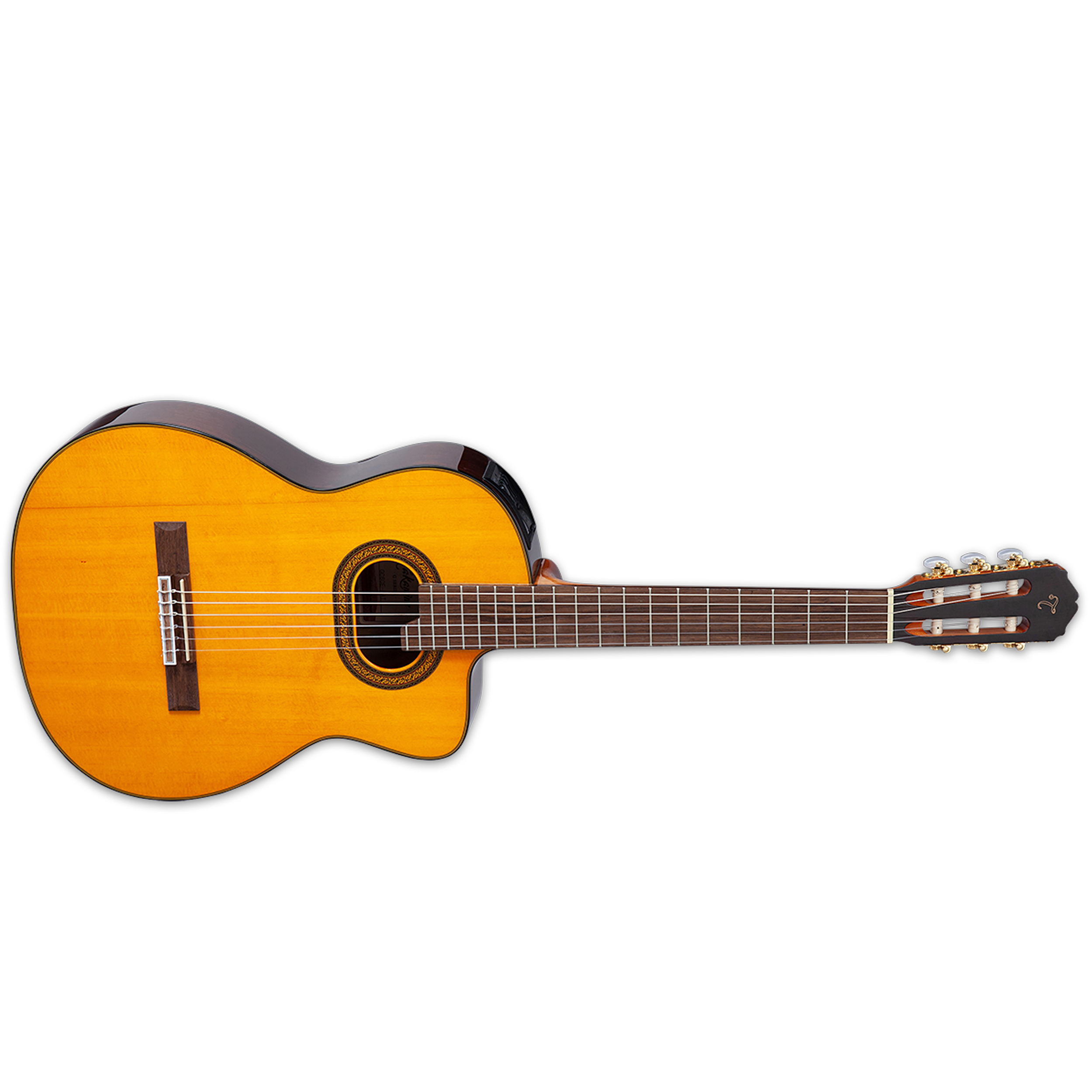 Takamine has a long history of making great classical guitars at a great value. The tradition continues here with this solid topped beauty, featuring a distinctive oval soundhole, gorgeous black walnut back and sides, and of course, legendary Takamine electronics providing ease of stage amplification. Finished in Gloss Natural.