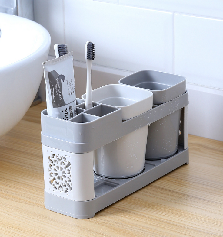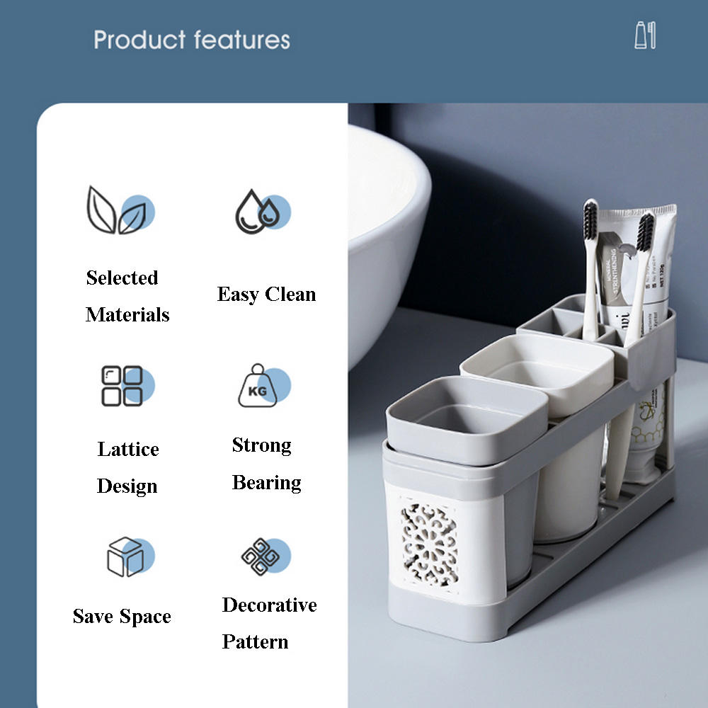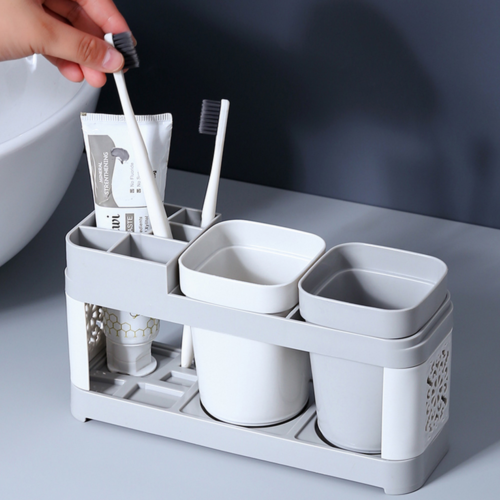 Toothbrush Toothpaste Stand Holder with Cups Bathroom Storage |