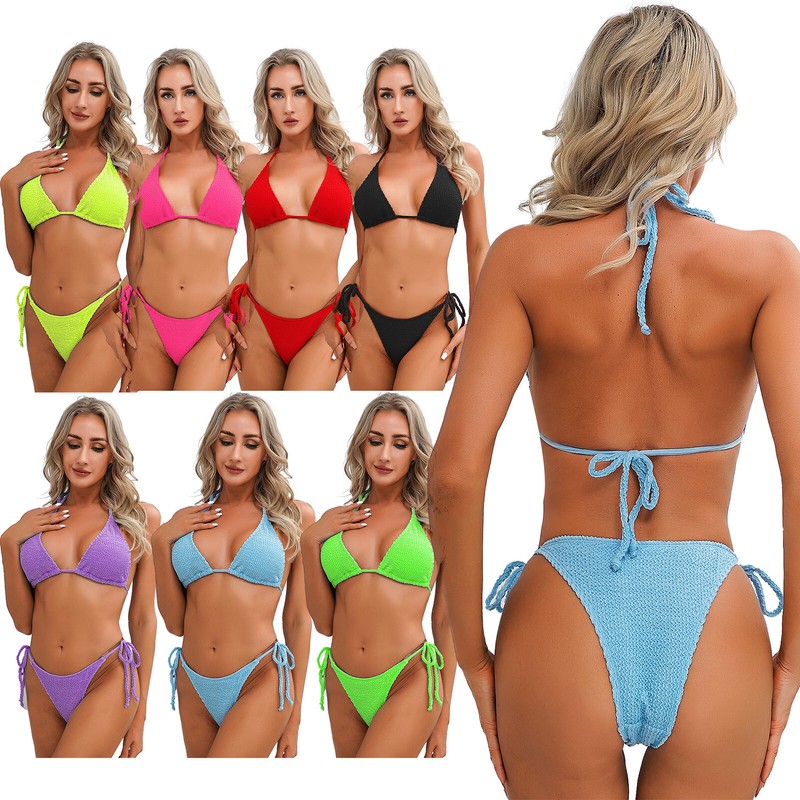 Solid color bikini set for women, featuring with special textured, perfectly shows your figure and make you more charming.
