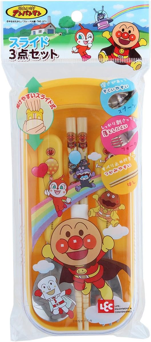 Leck (LEC) Anpanman Slide 3-piece set (Hashi / Spoon / Fork) Yellow K-920