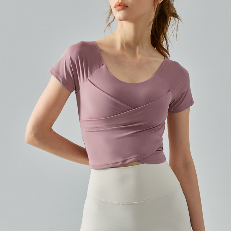 Designed with both yoga and casual wear in mind, this short-sleeved pullover is made of 100% polyester, making it durable, wrinkle-resistant and perfect for hot summer days.