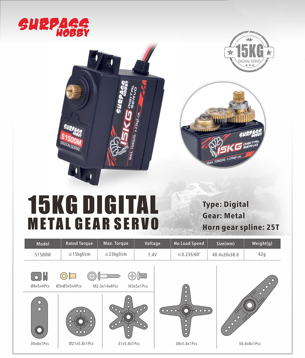SURPASS Hobby S0017M 17g Metallgetriebe 1,8 kg digitales Servo für RC Flugzeugroboter 1/18 1/16 LKW Auto Boot Kanalflugzeug