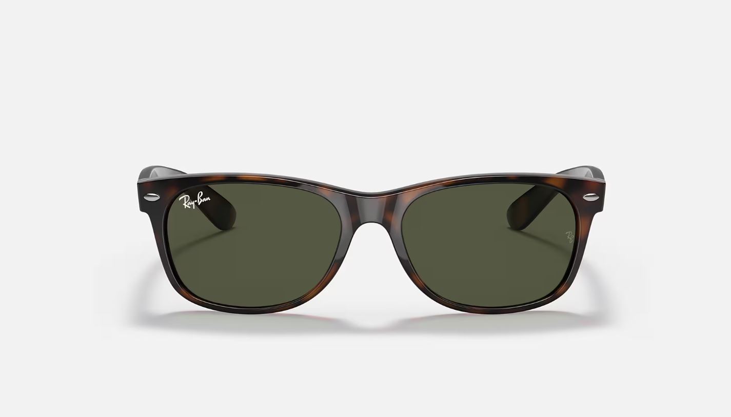 ✨ Redefine your everyday eyewear with the Ray-Ban RB2132 New Wayfarer Classic Polished Tortoise/G-15 Green 58mm Sunglasses – where classic design meets modern-day functionality!
