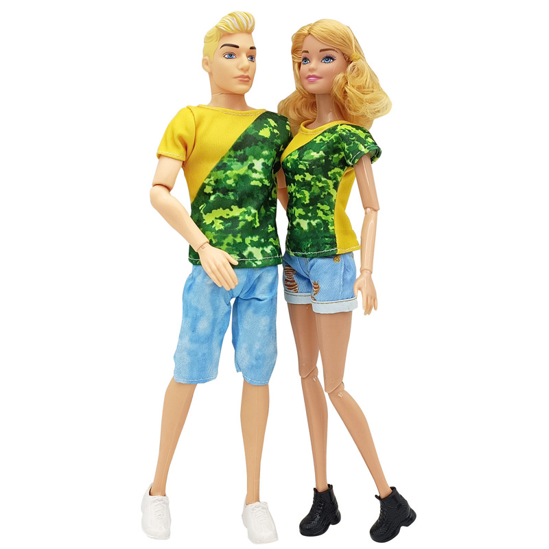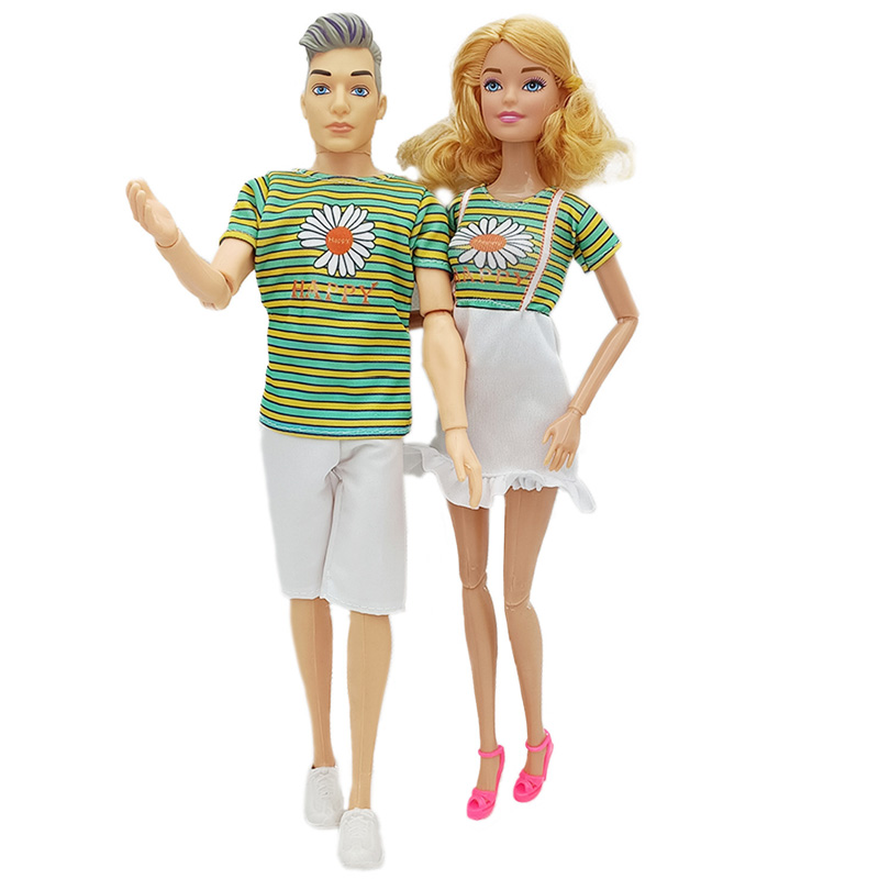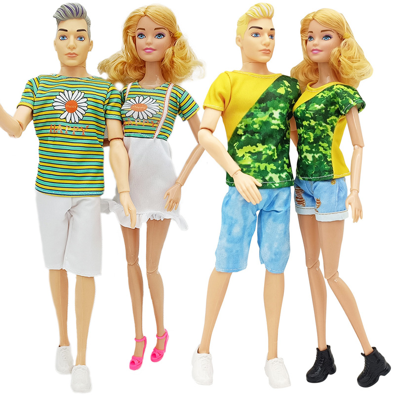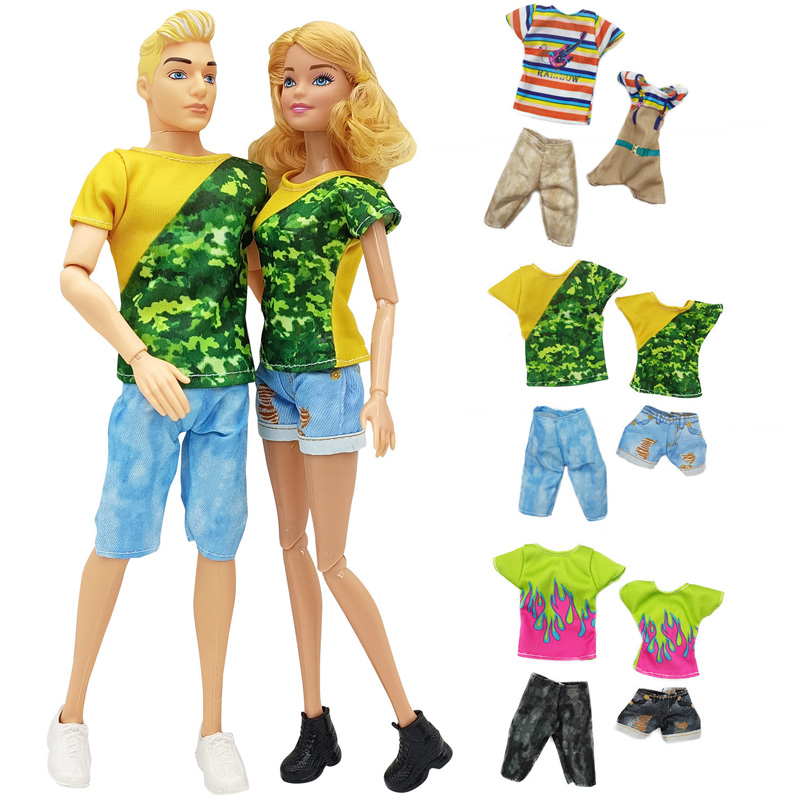 2sets/lot Summer Beach Fashion Clothes Set for Barbie Doll Outfit Couple Lover T-shirt Shorts for Ken Boy Dolls Accessories 1/6