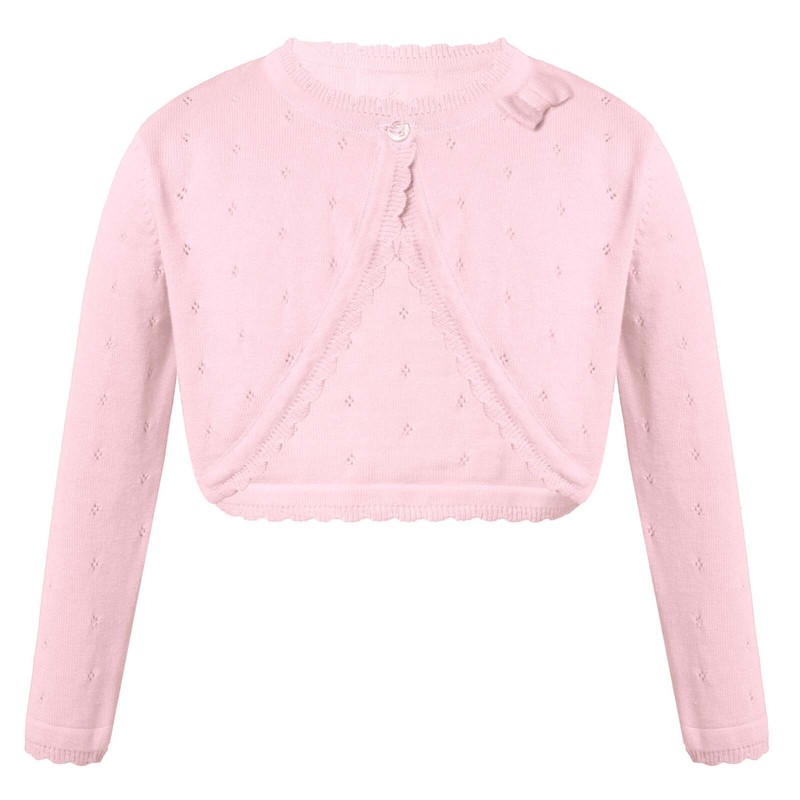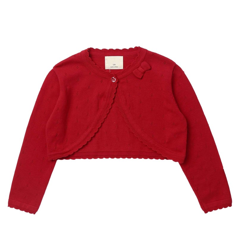 Kids Girls Long Sleeve Bowknot Knitted Hollow Out Rhombus Pattern Single Button Closure Crochet Cardigan.